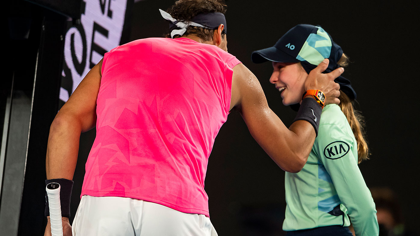 Nadal's little friend from australia , tennis 2020. The young anita said she hopes nadal can win the australian open and also: He rushed to her to check is she was fine and gave her a kiss on cheek. Rafael nadal has been slammed for kissing a ballgirl on the cheek after accidentally firing a brutal forehand straight into her face. For her, probably it was not a good moment, he told the crowd after.